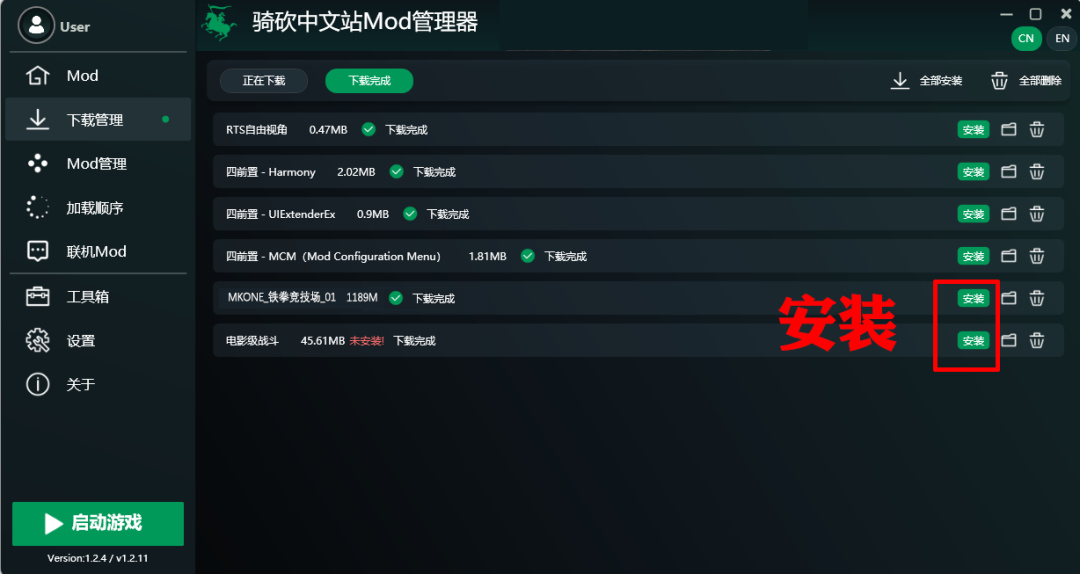 也可以直接百度搜索“騎砍中文站 下載中心”,進入下載站後搜索““電影級戰鬥、鐵拳競技場和MOD四前置”進行下載。