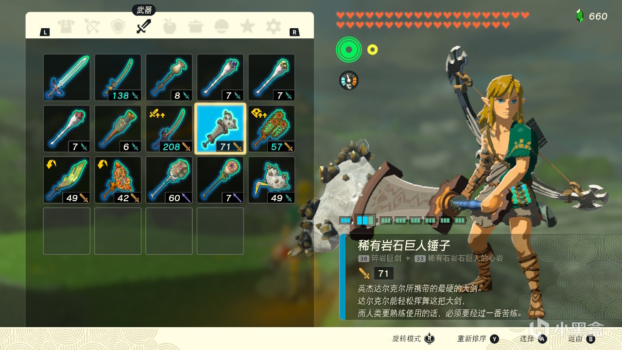 稀有石巨人心臟+曾經的石巨人剋星碎巖巨劍,就可以組成王國之淚中的石巨人新剋星