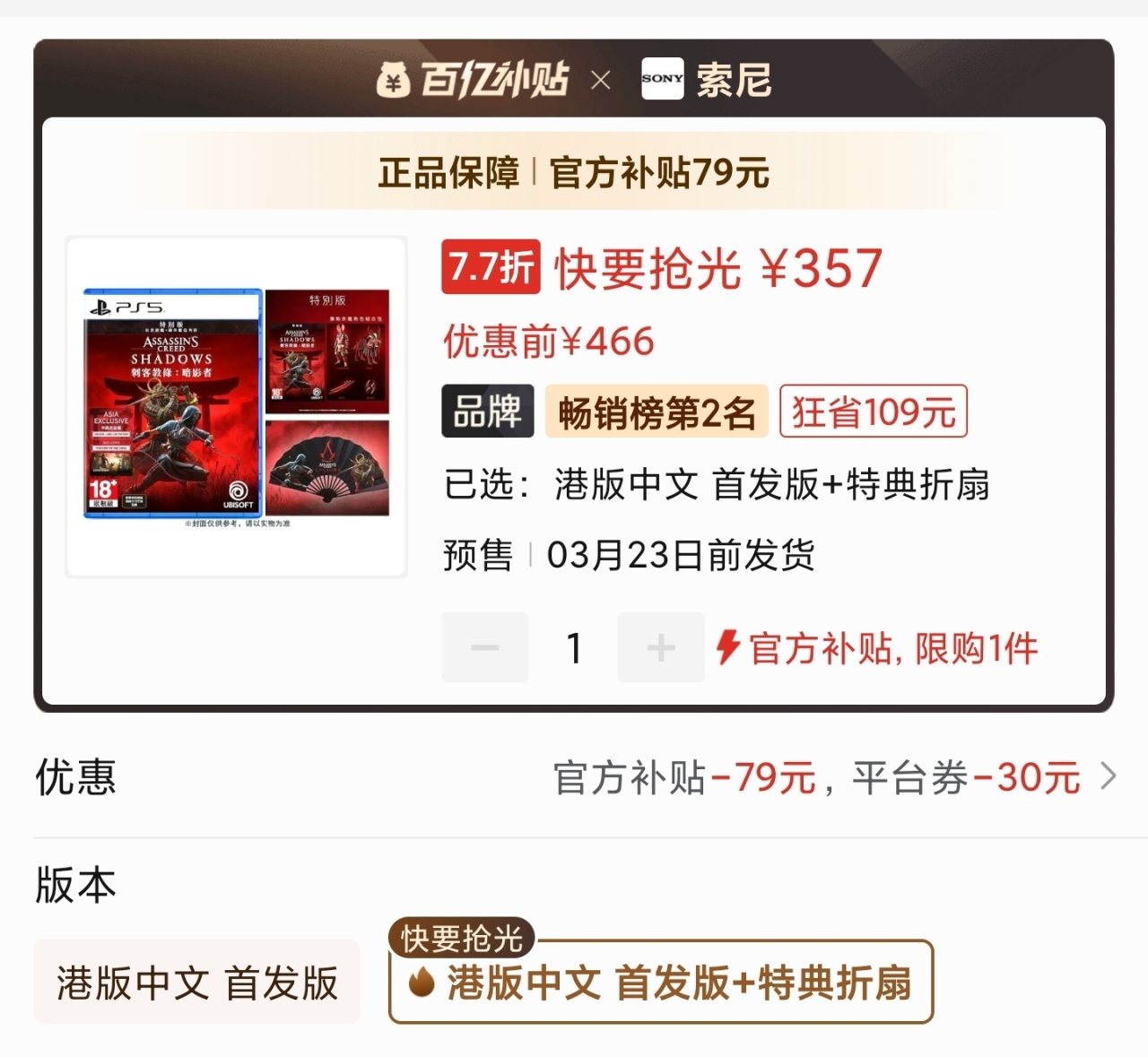 影的話,摺扇版本算是小漲了一點,350漲到357,需要200-30券
