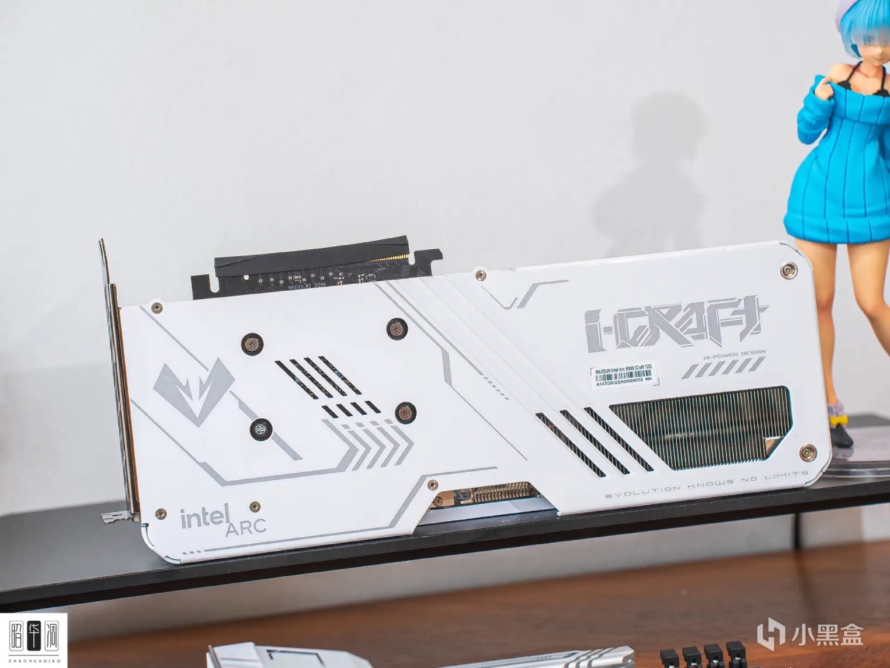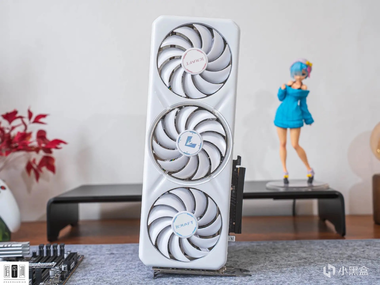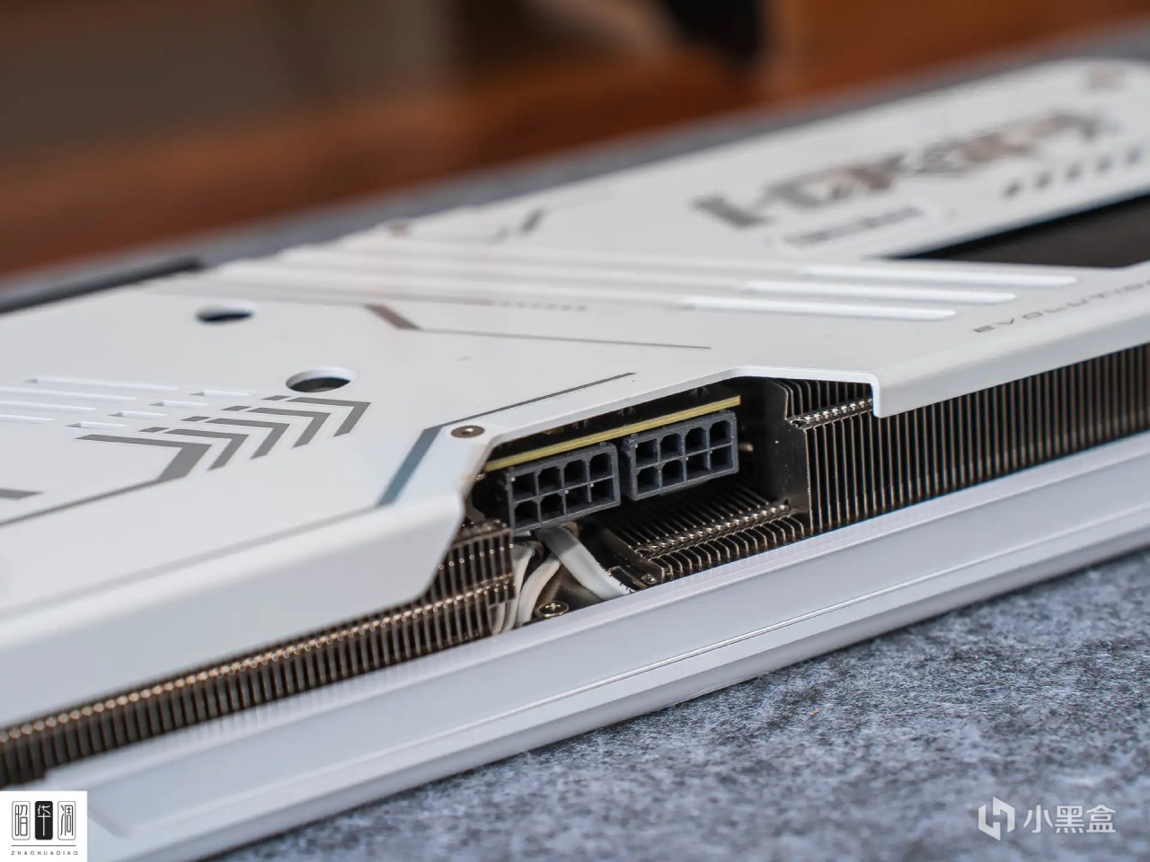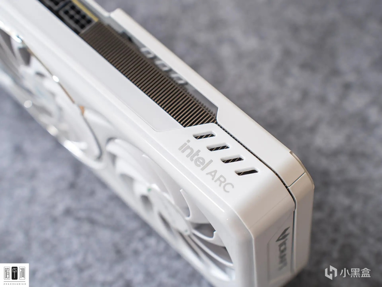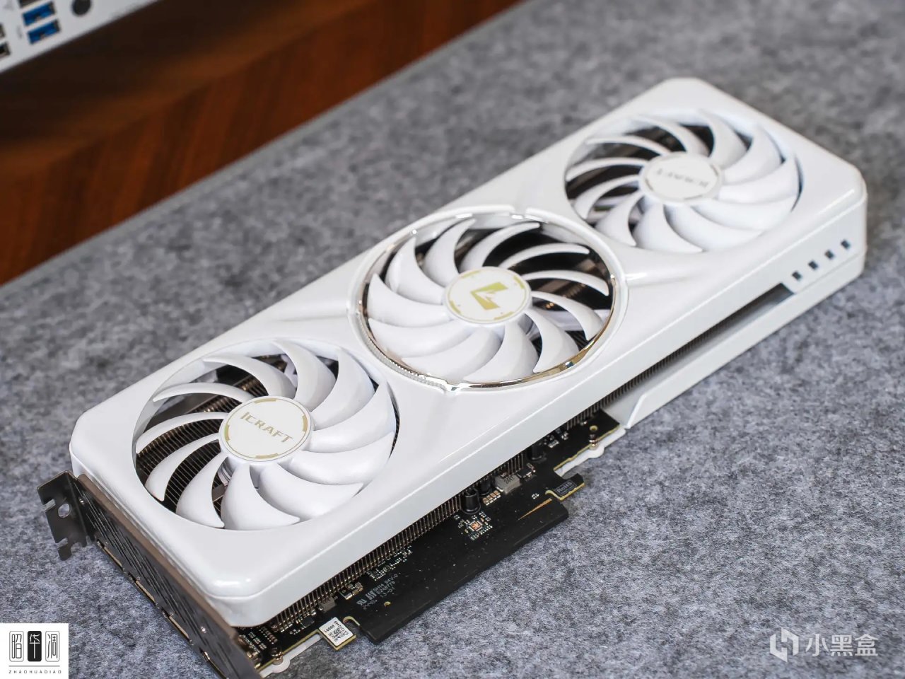 ▼顯卡在外觀設計上獨闢蹊徑,以純白爲主色調,整體風格簡約而不失高雅。其表面特別採用了白晝炫光塗層,這種獨特的塗層工藝使得顯卡呈現出一種螢白色的圓潤質感。觸摸顯卡表面,你會感受到一種溫潤且爽滑的觸感,彷彿在觸摸精美的陶瓷製品,給人帶來一種高級且獨特的質感體驗。