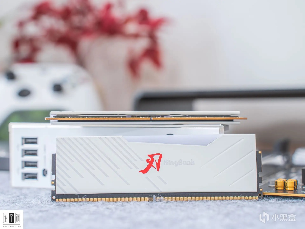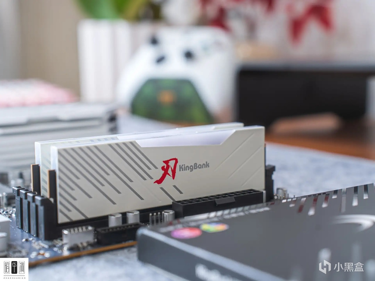 ▼內存是金百達白刃,頂部導光條內嵌 16 顆支持 ARGB LED 燈珠,燈光柔和不刺眼,色彩表現也很周正,可以很輕鬆營造出完電競色彩氛圍感。