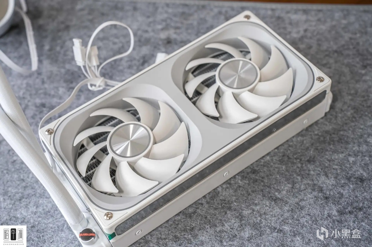 ▼這套水冷的風扇設計別具一格,採用聯排一體化結構,緊密相連,無法進行拆分!