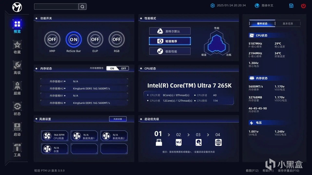 本次裝機選用的硬件主打性價比,Ultra7 265K 擁有出色的單核和多核性能,而 2K 出頭的價格讓人直呼“真香”。銘瑄 B580 電競之心顯卡在遊戲性能上可與 NVIDIA RTX4070 級別的中高端顯卡相媲美,生產力方面更是同級別產品中的佼佼者。