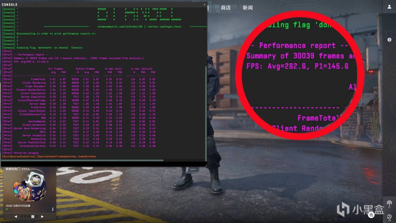 ▼網遊測試選用的 CS2,遊戲基於 Source 2 引擎打造,創意工坊也提供了FPS Benchmark,遊戲採用 1080P 分辨率 + 高畫質,DX11 模式,實測下來平均幀率 262.6FPS ,1%Low 幀率 145.6FPS。