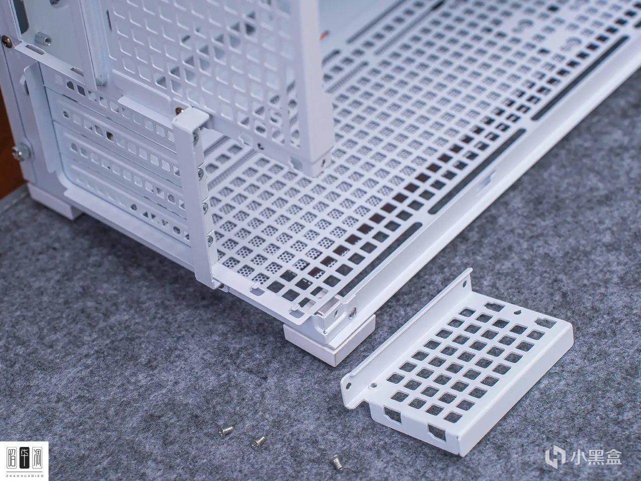 ▼機箱底部的 PCI-E 擋板採用可拆卸開口設計,兼容 365mm 以內顯卡。