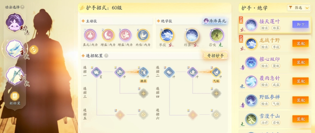 比如測試時我們內部發現,有一招重劍武器贈送的新手技能“風起雲湧”,升級到金色後非常強大,施放後下一個絕技能增加30%傷害,它的基礎攻擊係數與其他金色武學沒有任何差別,但這個加成大招30%傷害的BUFF非常強悍,後來幾乎成爲內部所有人必帶的一招。