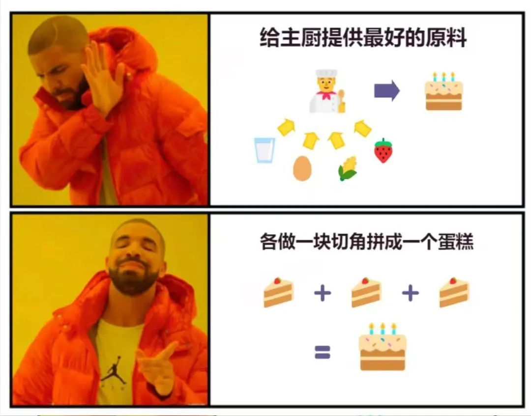 葡萄君:這種求快的模式,會不會導致各個小組做了不太統一的調整,最後拼成了縫合怪?就像這張圖諷刺的情況一樣。