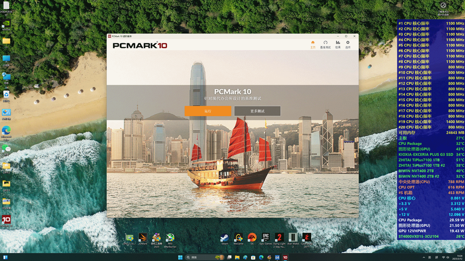 使用PCMARK 10模擬日常應用,包含:應用啓動速度、視頻通話、電子表格、圖片處理、視頻渲染等,共計8大個項,全自動跑快半小時,幾乎囊括全場景應用。總成績8915分。感興趣可以steam上買個測一下,8千以上就是超高性能電腦。