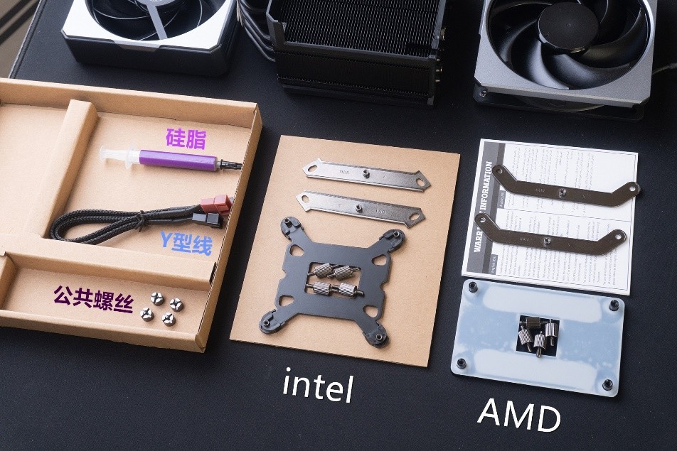 扣具及配件:配件包括,散熱硅脂、Y型線。扣具兼容全平臺:LGA 1851、1700、1200、115X、AM4、AM5。