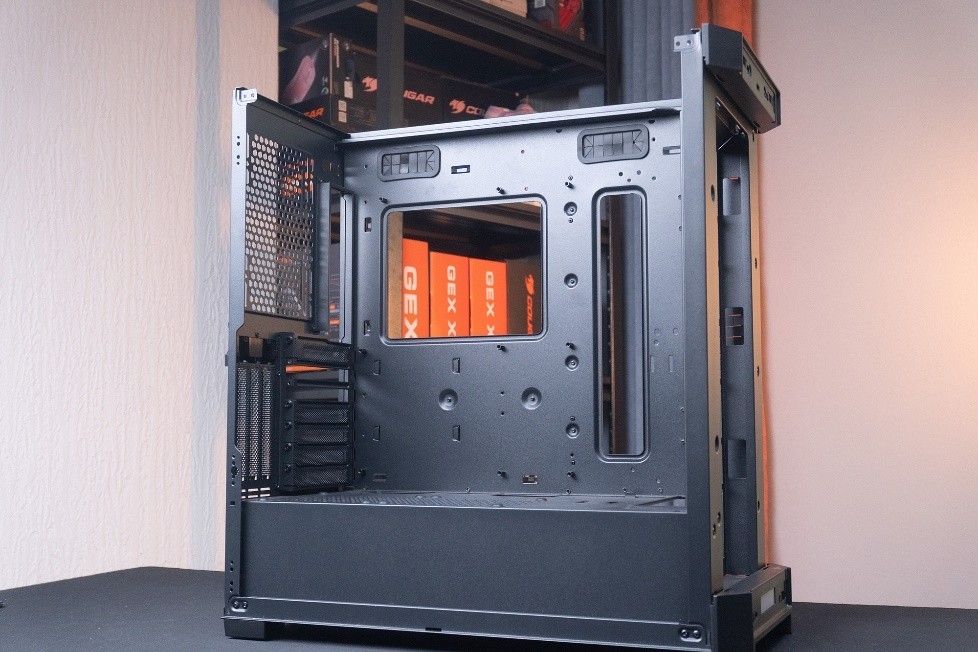 其它的我不展開了,就看拆頂開蓋。它非常適合安裝高塔散熱器。打開天窗之後,你的一些連接線啊、安裝風扇啊,操作會變得輕鬆直觀。能不能開蓋對於裝機來說,完全就是天差地別的體驗。