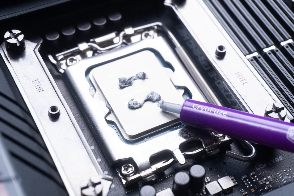 硅脂是屬於中等偏厚的,拿個小刷子不太容易攤勻,這種你擠5點就行了,散熱器會給你壓勻的。偏厚的是用時間會長一點。稀的三四個月就要換,散熱效率會好一點。