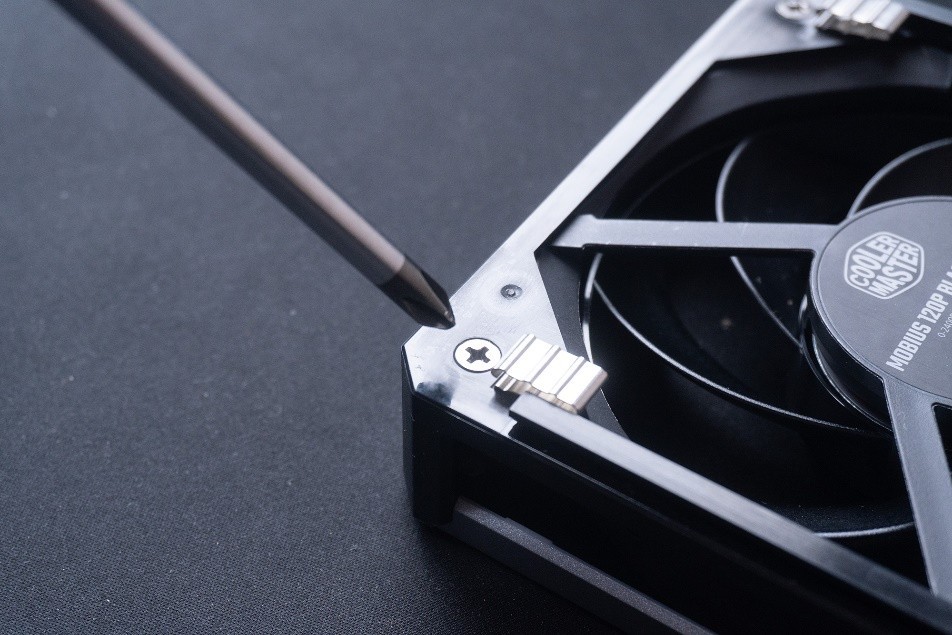 9片鐮刀型低噪葉片,雙面都有該系列標誌性的水波紋設計,提高了風扇的空氣動力學效應。扇葉與邊框的間距也優化到1mm,提高風壓和散熱效果。也再次減少風扇的震動和噪聲。