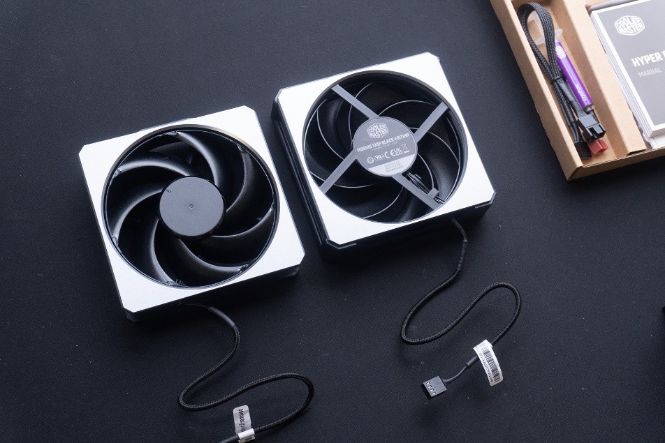 配備2把莫比烏斯高端風扇。120x25mm,高速2400RPM,無燈,單線,編織線很軟。無燈裝機就是這點好,什麼風扇都是一根線,好走線。