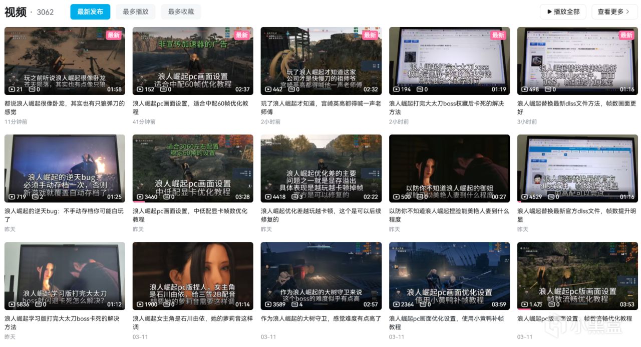 其次就是b站大佬幽兒希卡的小鈴鐺連着更新了好多條關於浪人崛起優化的視頻,