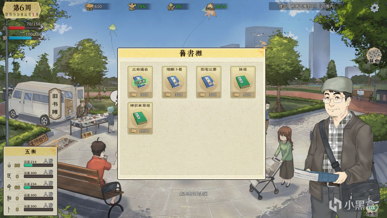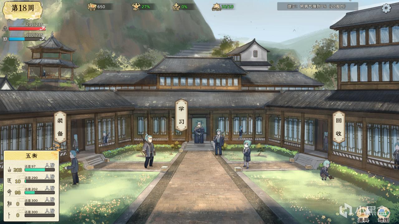 我們每週可以安排各項行程,比如修煉和讀書,不僅能清除病氣還能增加我們山、醫、命、相和卜的屬性,但會不斷消耗精力,所以我們也必須穿插着睡覺來恢復精力,於是就這樣,便開啓了我們的修仙之旅。