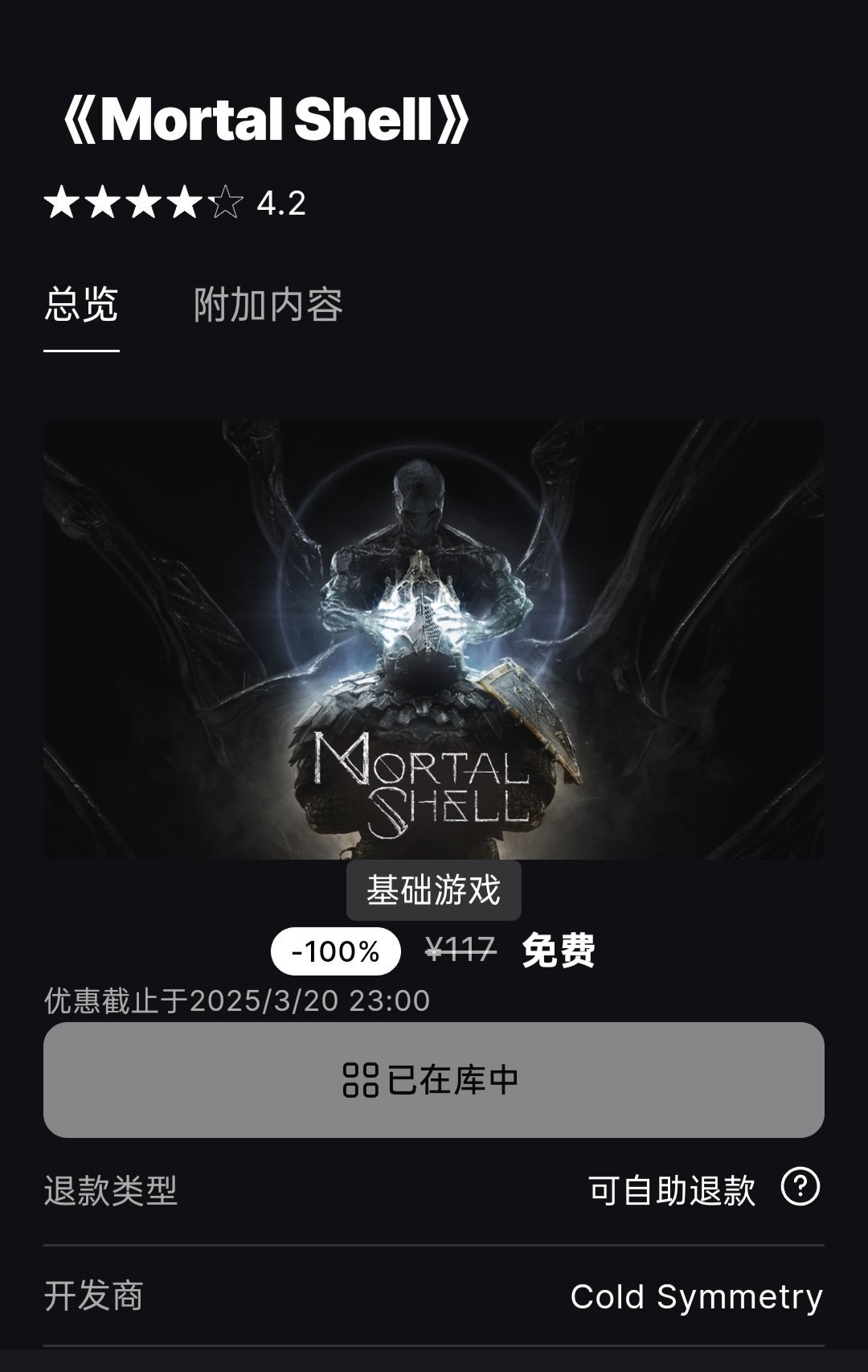 又到了周四啦,又到了epic每周送游戏的时间啦,本周是喜加二,不过和喜加一差不多,甚至老玩家喜加零,本周送出的游戏是steam平台原价100,epic平台原价117的致命躯壳,以及双平台本体免费,有内购的多人联网游戏战舰世界