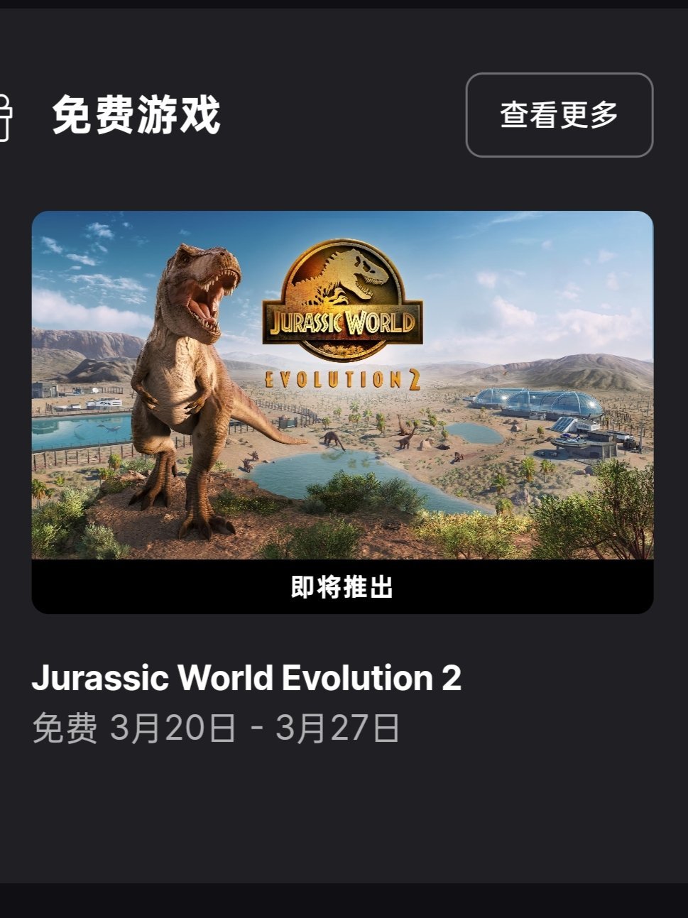 另外下周要送出的是侏罗纪世界进化2这个游戏