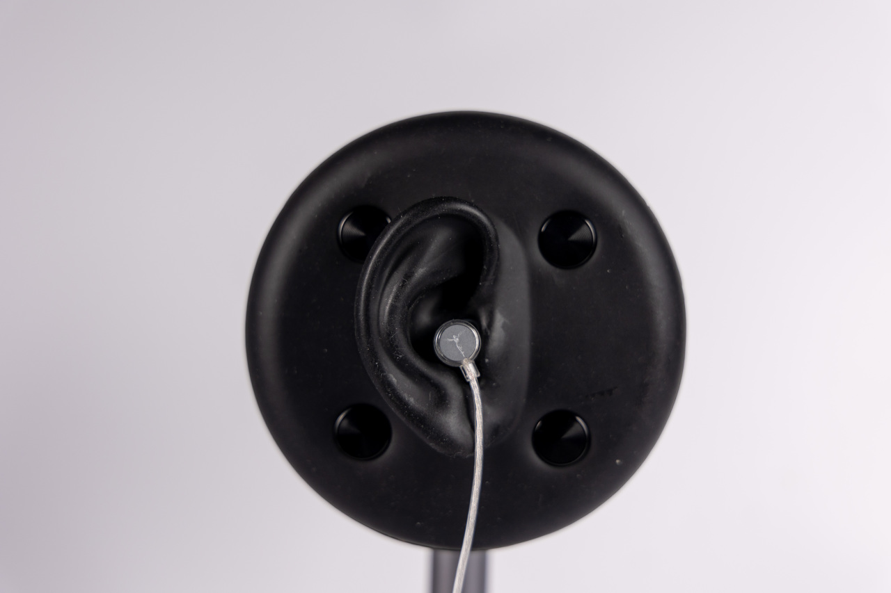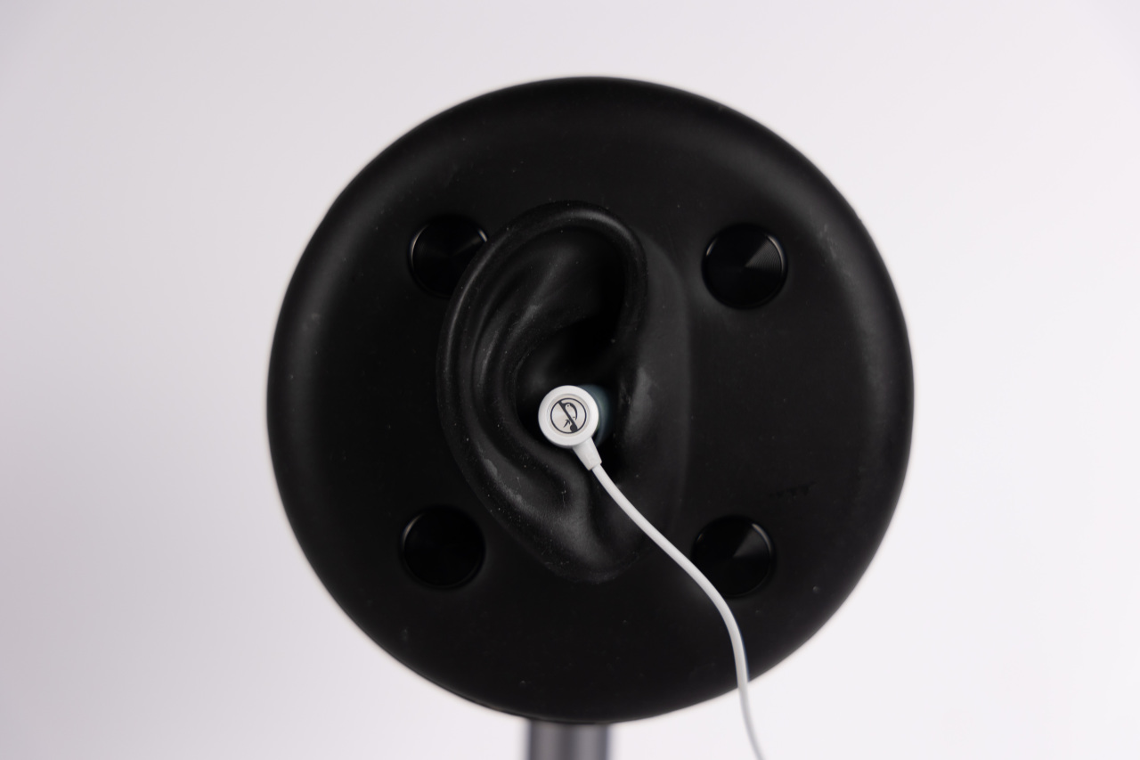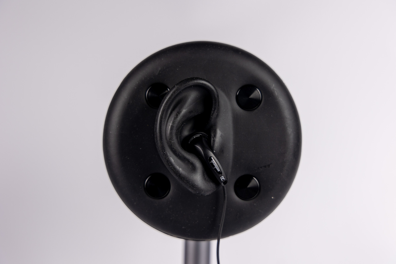 整個腔體是個非常完美的球體,只有導管部分伸出來了一些,戴上硅膠耳塞的話就像是一個球上戴了個帽子。