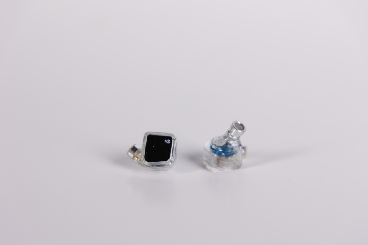 耳機外觀還是有點設計的,後腔部分設計成了一個正方形,中間鑲嵌了一個不鏽鋼片作爲裝飾品,前腔還是常規的斜插入耳式設計,標配了一根無氧銅鍍銀線,線材顏值不錯,防纏繞效果稍微普通了一點。