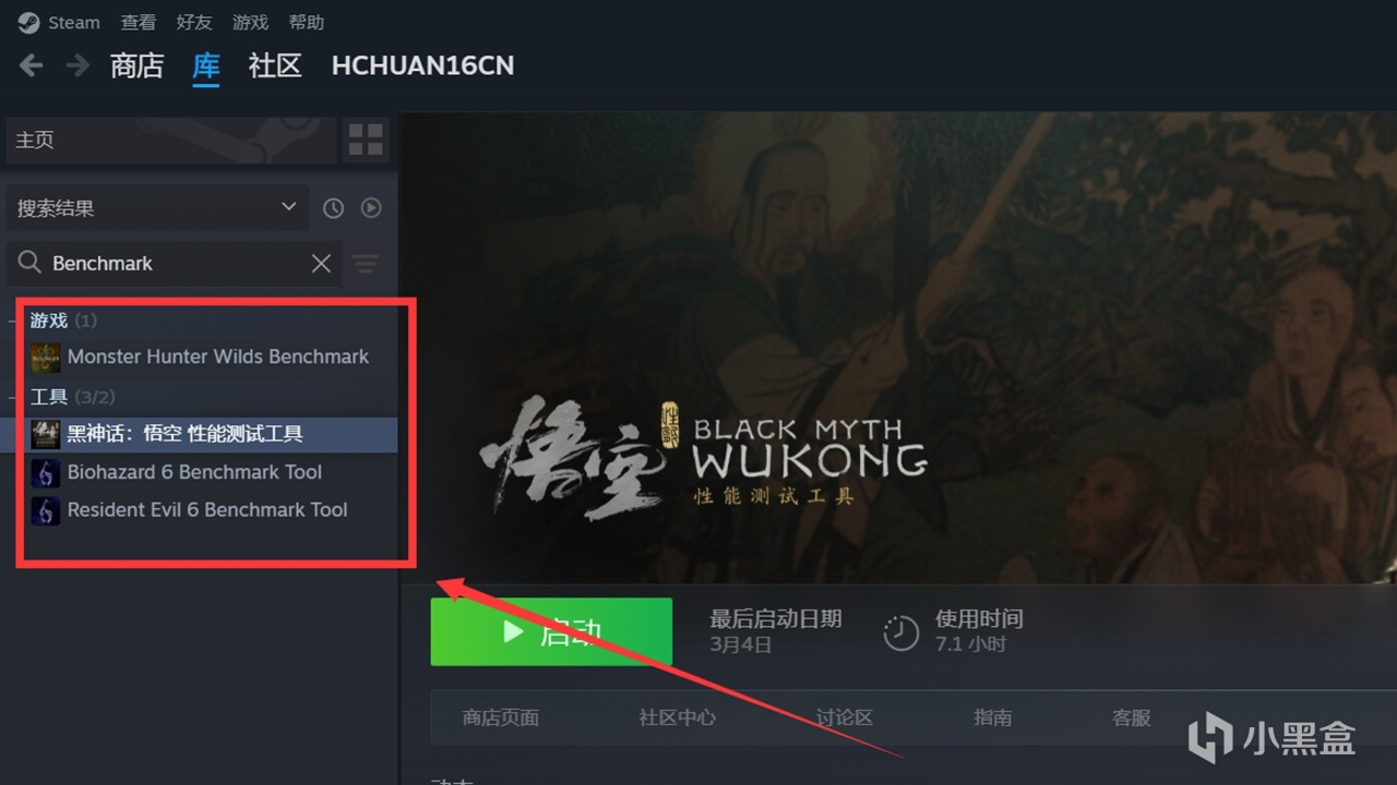 优化比较好的游戏都会提供单独的测试工具,体积比游戏本地小很多,比如黑猴和怪猎这些,Steam搜索Benchmark就出来了,记得勾选上工具,默认不显示在库中。