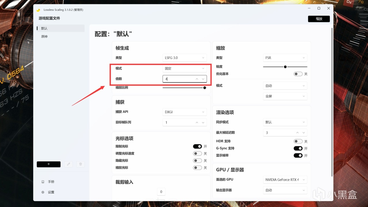 这个方案的优势是对显卡的利用率更合理,更适合中低配显卡,首先是帧生成功能设置,也是小黄鸭的核心功能: