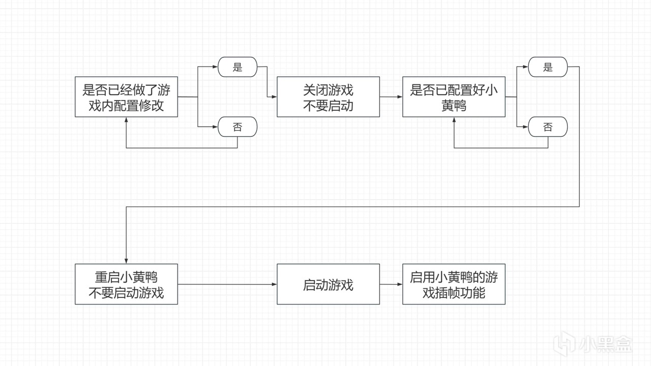操作流程具体看下图,这里就不再赘述了,下面会按照这个流程图的顺序依次讲解如何快速且有效的配置游戏+小黄鸭。