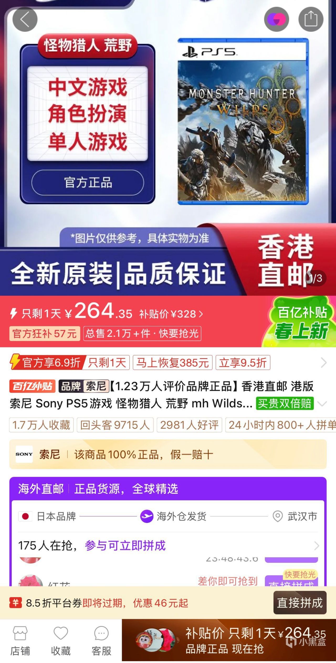 3.PS5《怪物猎人:荒野》首发特典版+铁盒324元全新包邮,目前单个游戏的价格差不多是264元,也就是说这个铁盒价值60元,喜欢收藏实体版铁盒的玩家可以入手这个版本,性价比极高。