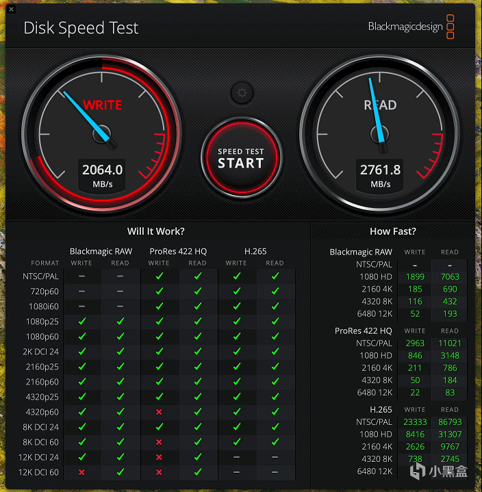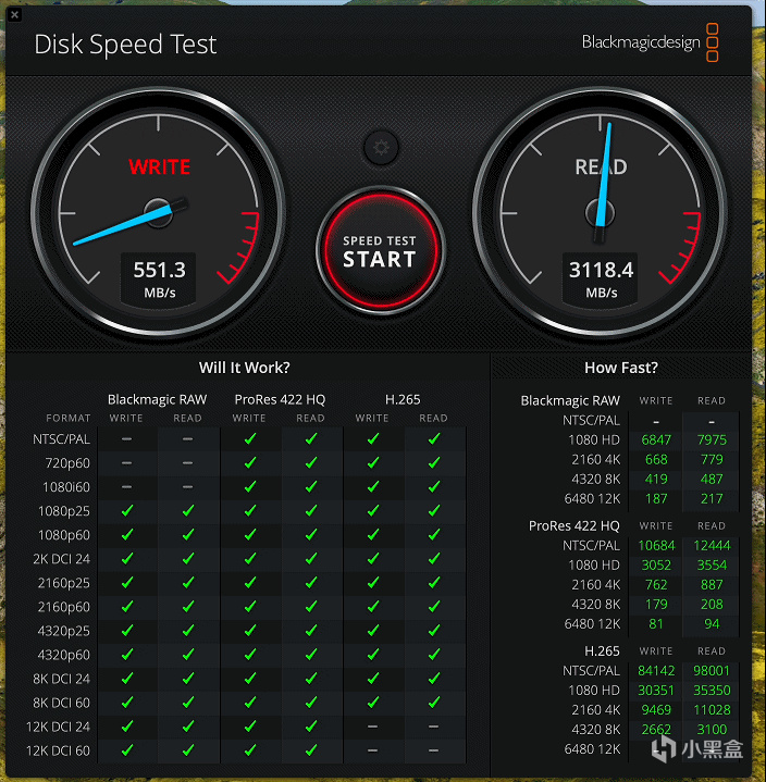 使用Disk Speed Test進行視頻場景性能測試,幻隱硬盤擴展塢搭配幻隱HV3000固態硬盤,寫入速度爲2677.1MB/s,讀取速度爲3118.4MB/s。