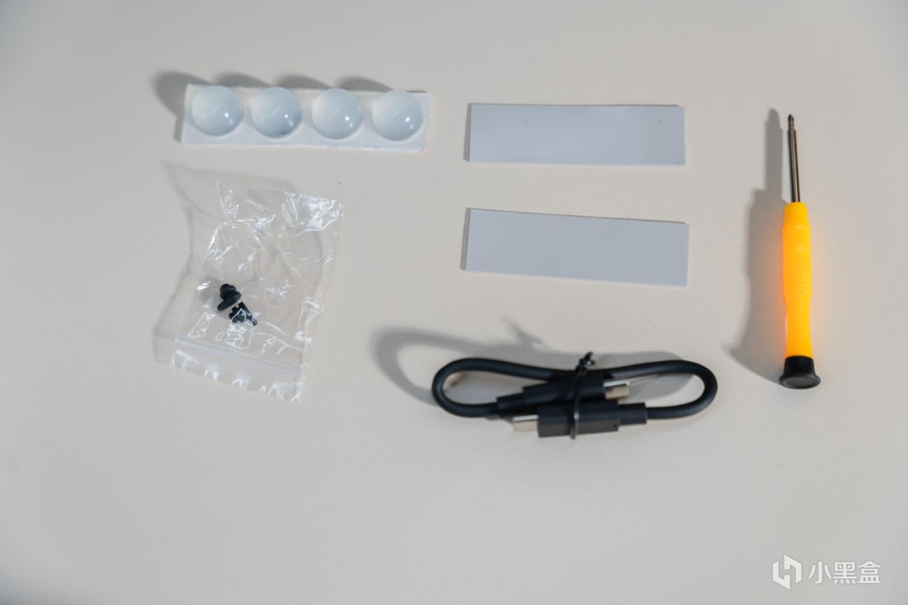 除了拓展塢機身外,還提供了螺絲刀、USB4連接線、硬盤散熱貼、硬盤固定橡膠栓等配件。