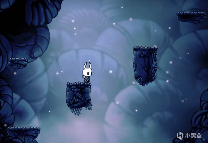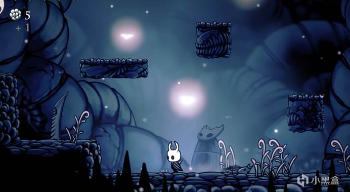 在空洞騎士的這一關卡中,各個平臺的高度差也是顯而易見的不同,因此對於玩家而言,通過學習掌握跳躍按鍵時間的長短是至關重要的,而學習這一階段也屬於“起承轉合”中的“起”。而這一區域右側的金錢堆(吉歐堆)也引導玩家攻擊獲取金錢(吉歐),告知了玩家獲取資源的另外一種方式。
