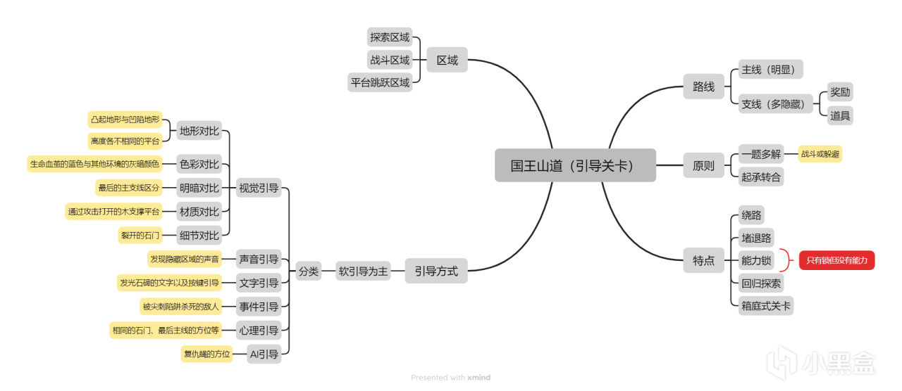 自此國王山道這一新手引導關卡正式結束,總結思維導圖如下(由於路線較爲線性關卡結構拆解沒有做,放一張簡要路線地圖吧):