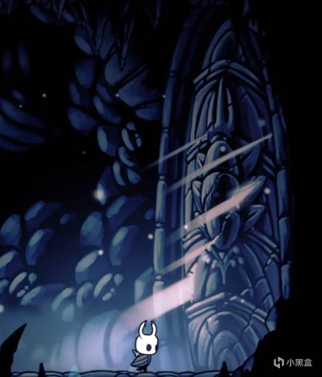 玩家繼續前進,就會迎來有着視覺引導的裂開石門,明顯引導玩家通過攻擊石門開闢道路。而這一視覺引導不僅是攻擊教學,同時也爲之後使用同樣石門的支線隱藏關卡做了鋪墊。引導關卡後續的兩道相同石門也是在爲玩家掌握攻擊頻率和攻擊距離鋪墊,從而更好地應對遊戲的第一個敵人。