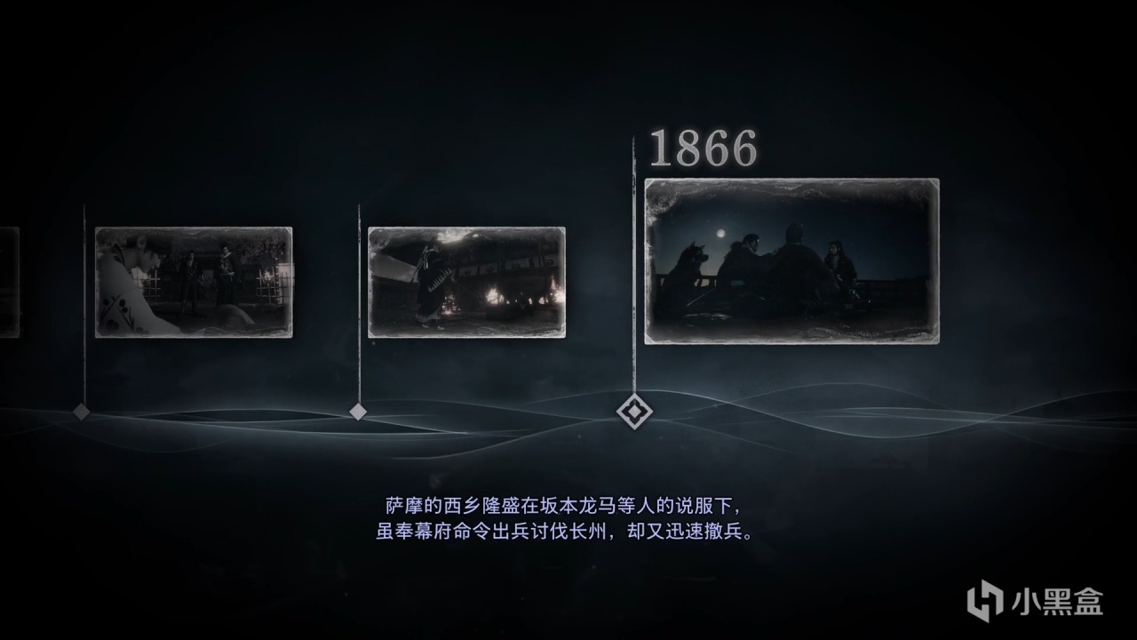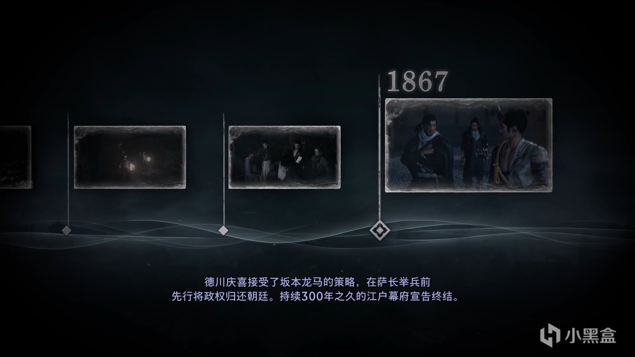 朝廷因缺乏实际控制力,被迫暂时委托幕府继续执政,形成“名归天皇,实属幕府”的局面,萨摩藩主岛津忠义率3000兵力增援京都驻军,总兵力达1万;长州藩则派遣2500人进驻大阪周边,安艺藩也派兵300人入京。亲幕的会津藩、桑名藩与幕府军驻守京都二条城,双方形成军事对峙,倒幕派暂未发动攻击。接下来本应是幕后总操盘手坂本龙马登场,说服双方放下武器,然而一场黑天鹅暗杀事件,再次改变了历史的走向。