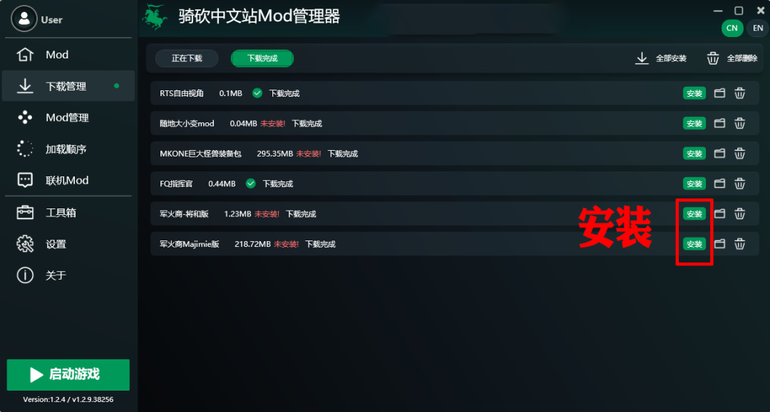 1、打開騎砍中文站的MOD管理器,下載與瞭解管理器詳情可以瀏覽【官方推薦】全網MOD一鍵安裝的神級工具《騎砍中文站Mod管理器》V1.01正式版發佈