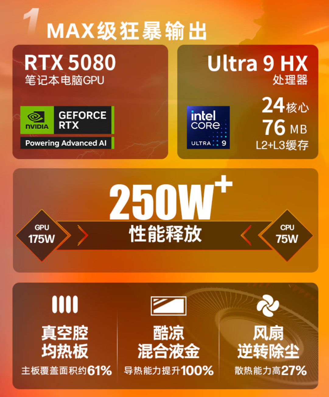 性能平臺:Ultra9 275HX處理器+RTX 5080顯卡