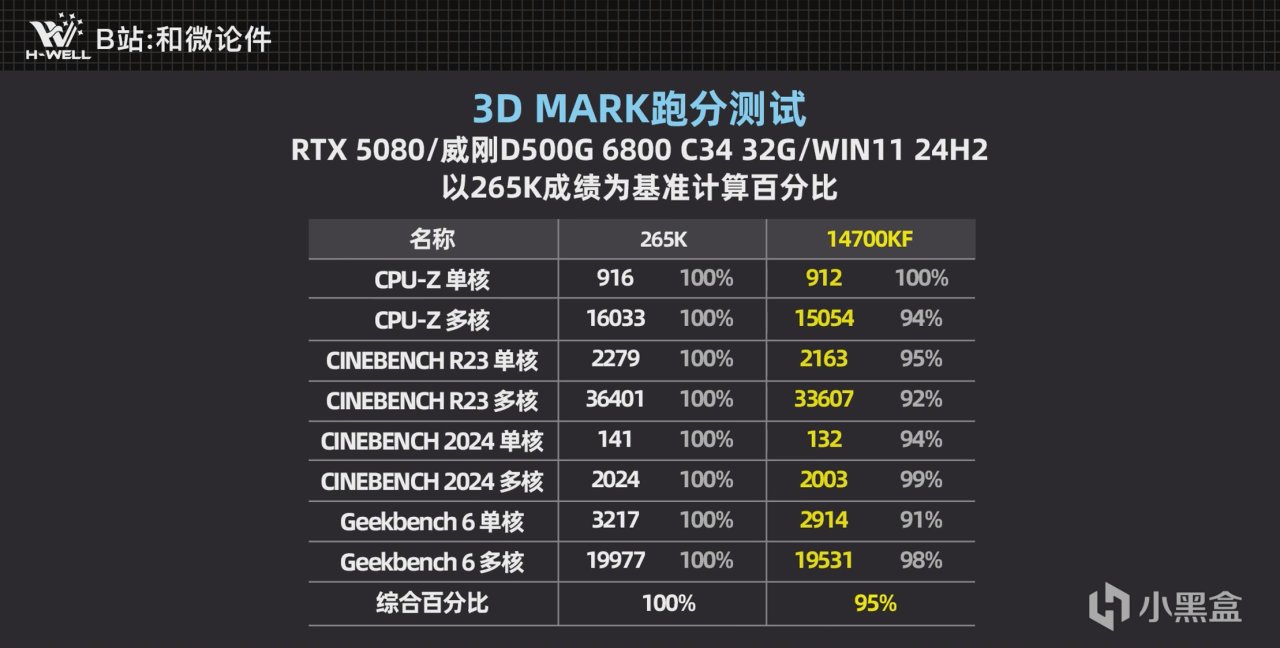 性能方面,我们也让265K与14700KF进行了实测对比,具体的测试平台如图