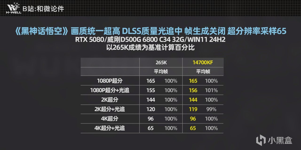 在《黑神话悟空》这里,3个分辨率下2颗CPU的差距都不是很大,这也证明了这个游戏并不吃CPU,如果想要更好的游戏体验,建议将更多的预选分配在显卡上。