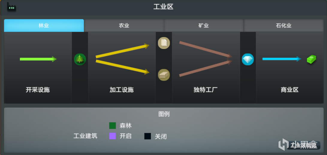 首先是工業(不同於原版的“黃色工業區劃"),先是原理機制講解,各位要抄作業的話請往下劃