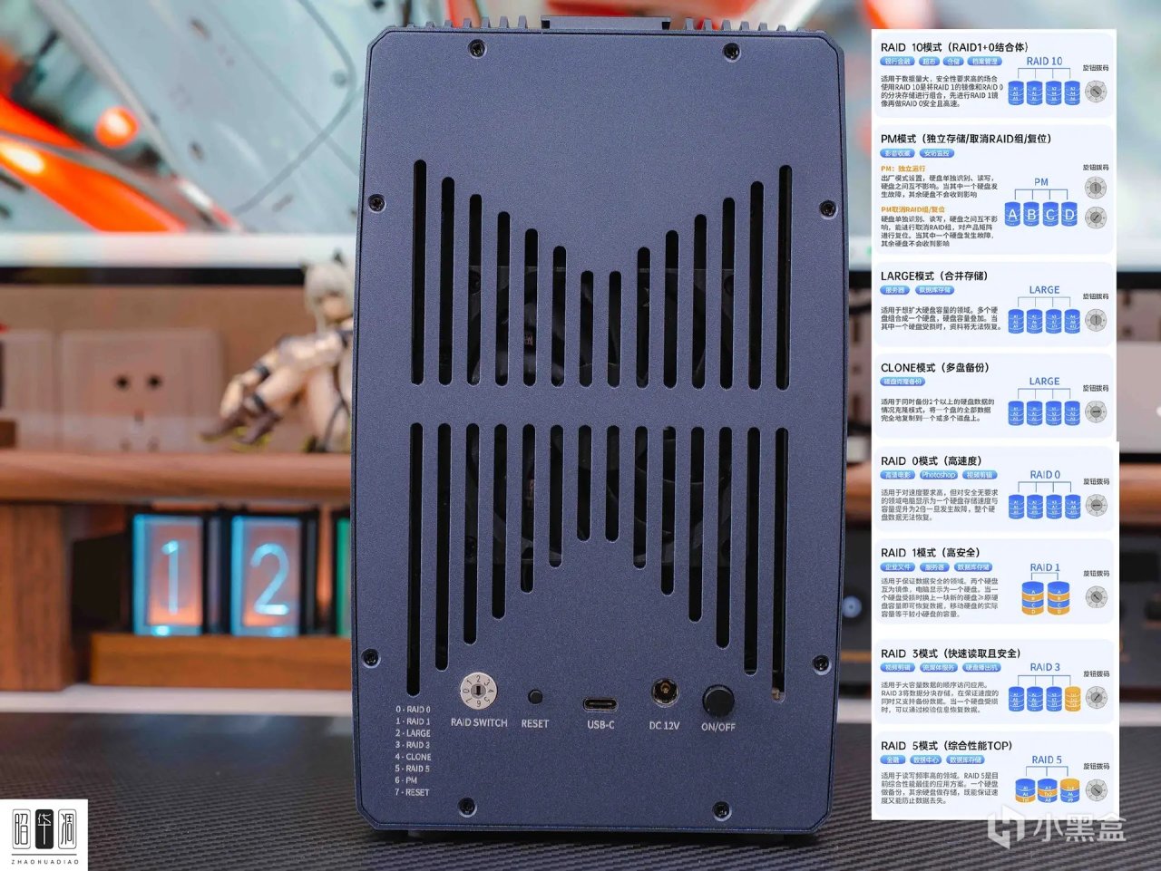 ▼ACASIS 阿卡西斯是個專注於高清視頻採集和高速數據傳輸數碼設備的品牌,之前入手過它家的採集卡和擴展塢,無論是做工質量還是性能配置都相當靠譜。手頭這款硬盤陣列櫃爲 5 盤位組合,支持 8 種 RAID 模式,配備了獨立供電保證數據安全,而且全面兼容 Windows、Linux、Mac OS 等系統。