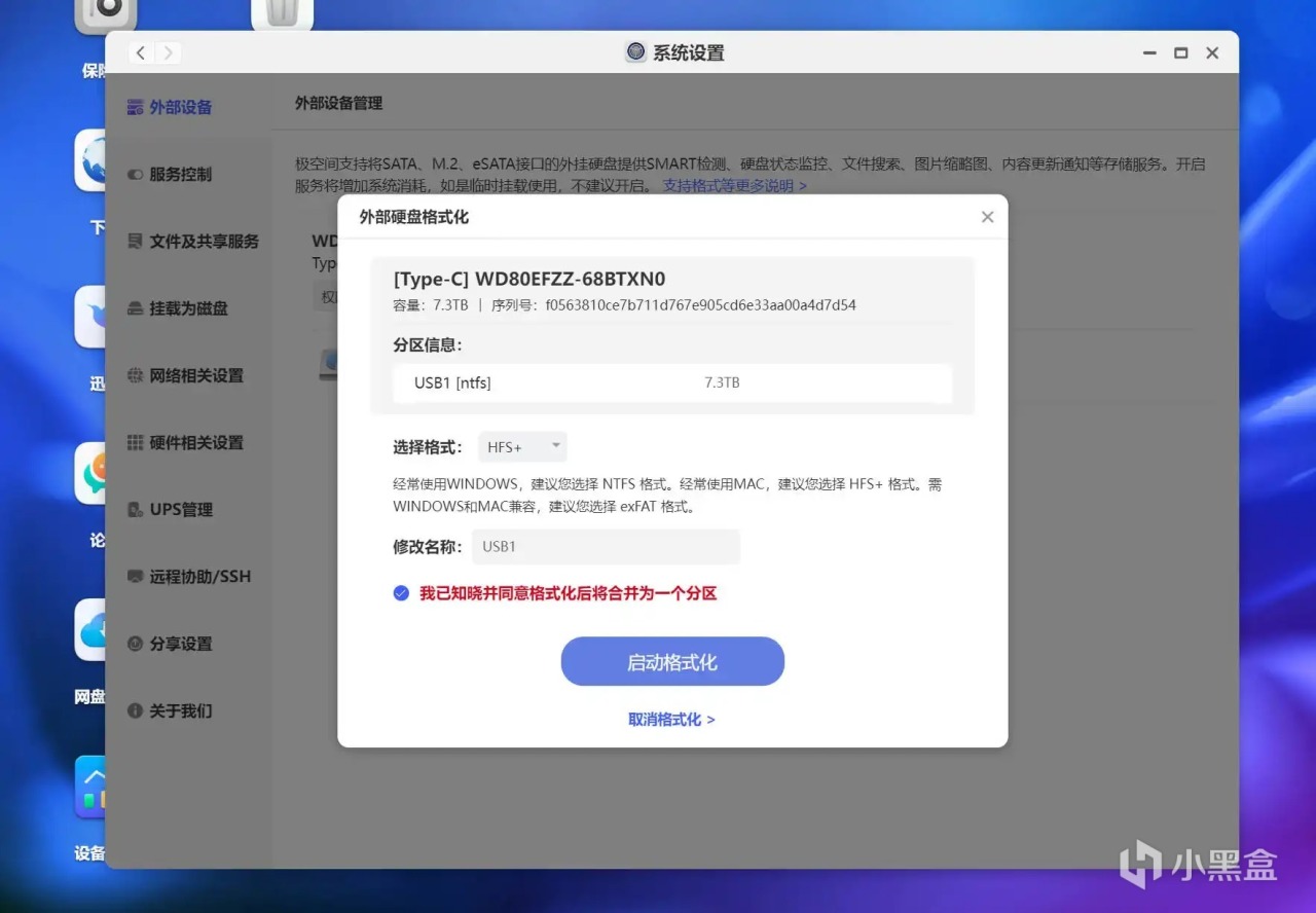 ▼分區格式建議 HFS+,可以兼容 Windows 和 MAC ,這樣存儲的資料可以被多種設備讀取