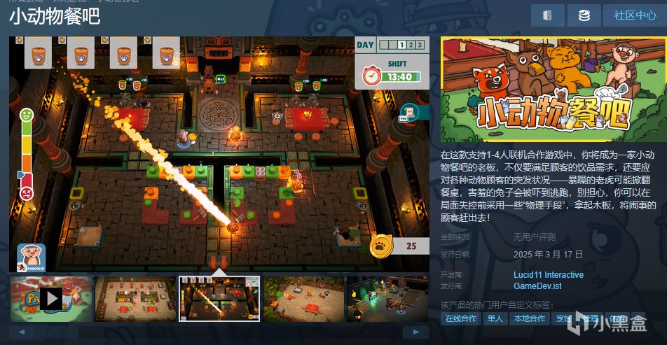 明天17号,《小动物餐吧》就要发售啦,官方也是推出了活动,上线当天24小时内即可免费领取,永久保留在steam账户里。