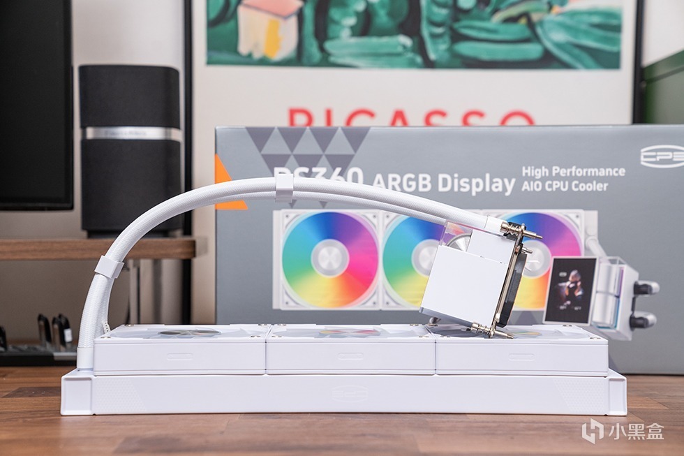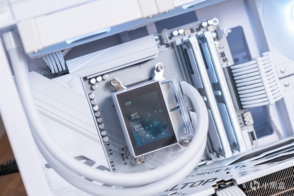 散熱來自超頻三DS360 ARGB屏顯水冷,採用了簡約的設計風格,在DS360的基礎上增加了冷頭顯示屏幕,整體呈現出低調而不失質感的外觀,更具科技感。