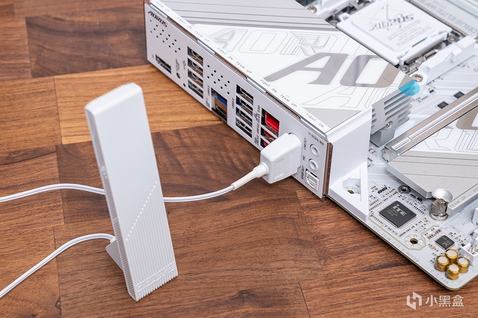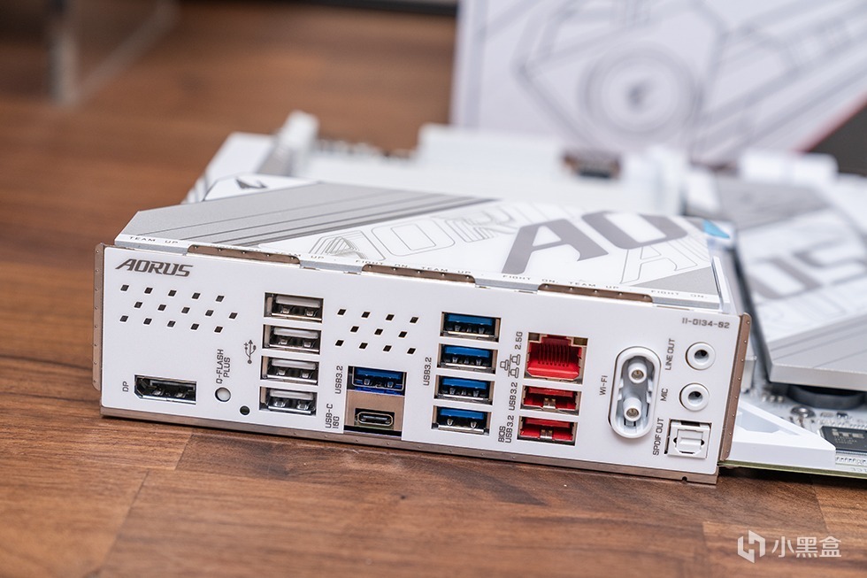 在背部的I/O區域,主板還提供了4個USB 2.0接口,5個USB 3.2 5G接口,2個USB 3.2 10G接口,DP接口,USB-C 10G接口,2.5千兆高速網口,Wi-Fi6E天線快插接口,以及一組音頻接口,可以滿足玩家多樣化的連接需求,
