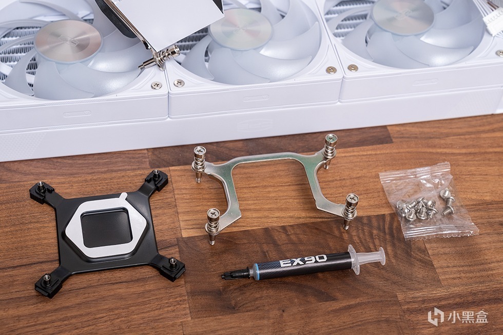 附件方面配備了INTEL/AMD全平臺扣具,支持英特爾LGA115X、LGA1200、LGA1700、LGA1851; AMD AM4、AM5,兼容性不是問題,同時附送EX90高散熱係數硅脂。