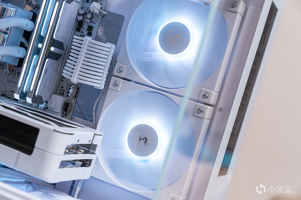 爲了保證機箱內的RGB燈效統一,將水冷以及機箱散熱風扇全部換成了九州風扇FD12 WH ARGB風扇。