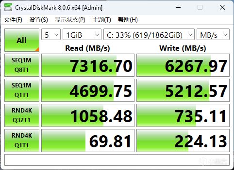 佰維NV7200 採用DRAMLess無外置緩存芯片設計,支持智能Smart cache與HMB主控內存緩衝技術,撕掉表面的石墨烯散熱貼可以看到PCB左側的聯芸MAP1602主控,右側是4顆佰維自封的長江存儲顆粒,每一顆的容量是512GB,共計2T。