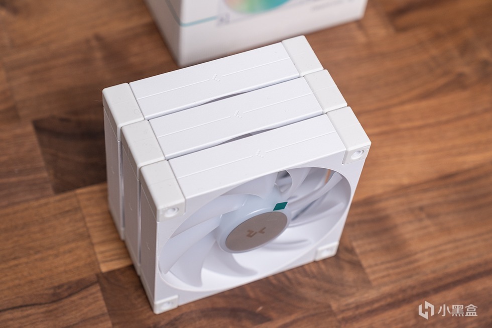 風扇扇框採用PBT材質,風扇中心內置6顆第二代ARGB燈珠,輔以透明材質扇葉,搭載Hydro軸承,最大轉速2050±10%RPM,最大風量風壓分別爲63.6 CFM和2.56 mmAq,噪音值不高於26.9 dB(A)。