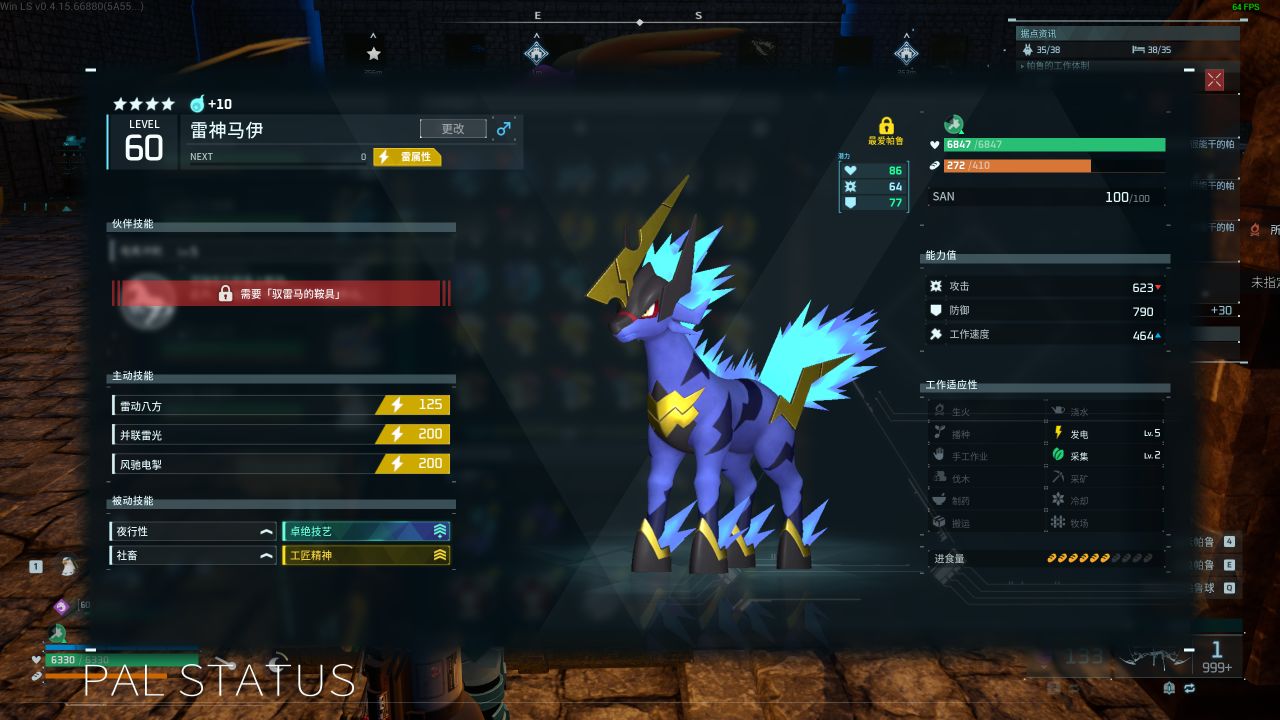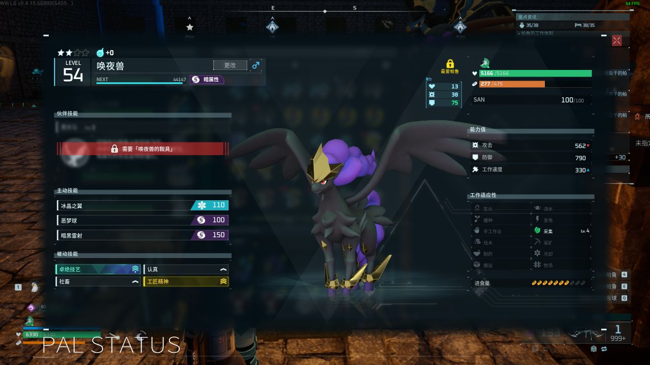 接下來就是暗系帕魯部分了,暗系帕魯我這裏需要用到堪稱祖母的一隻帕魯:雷冥鳥