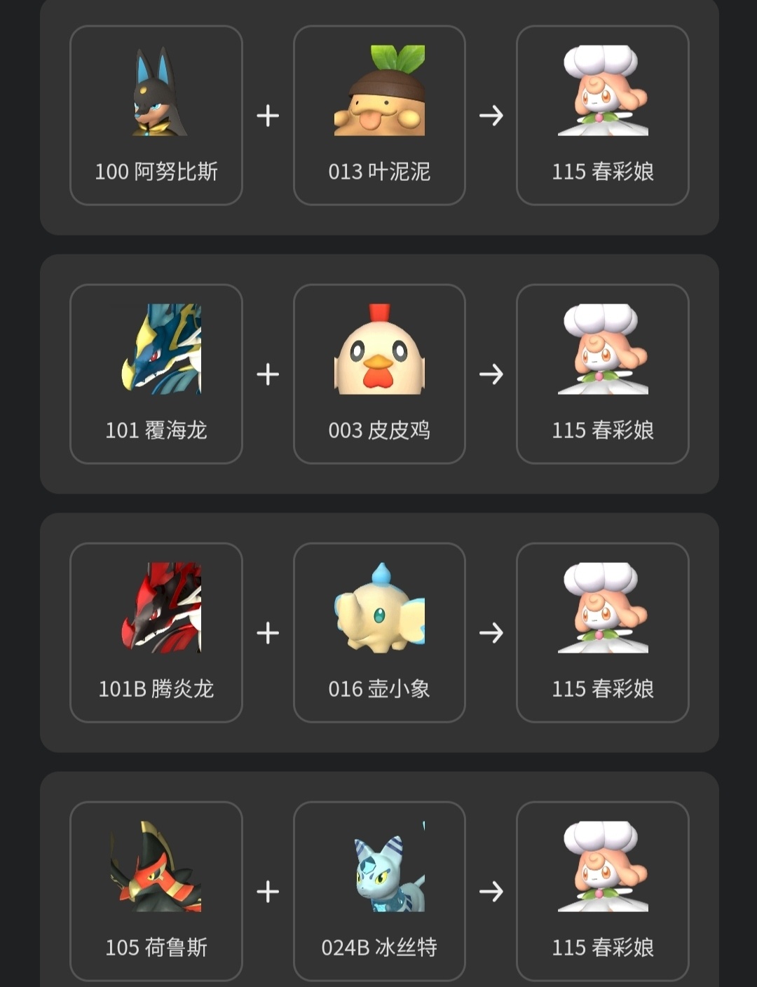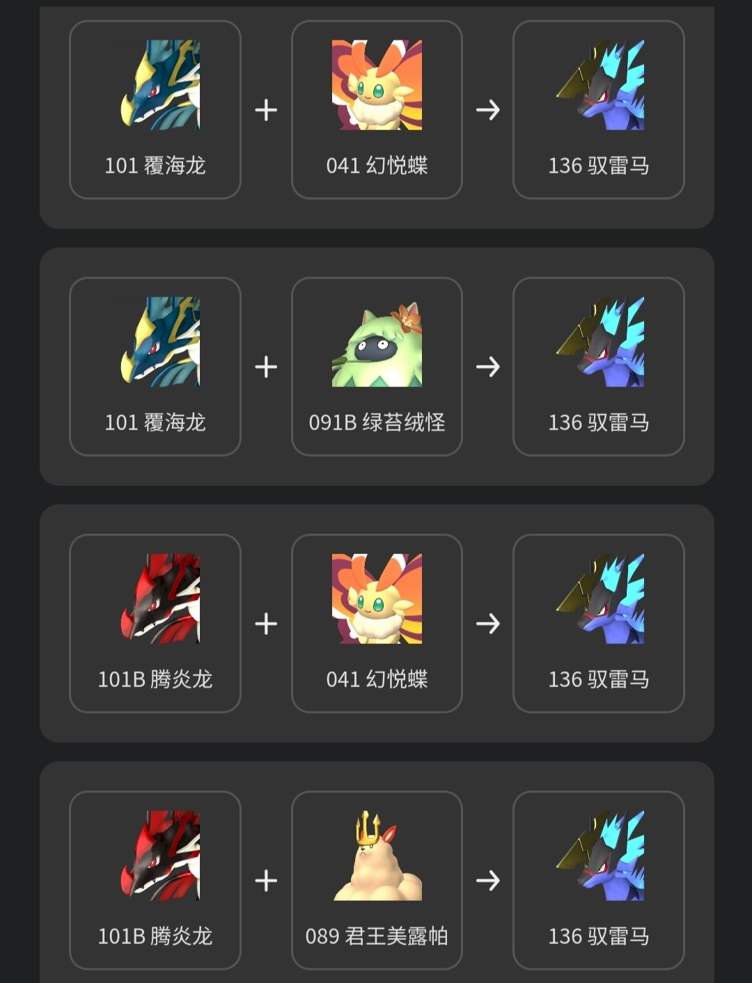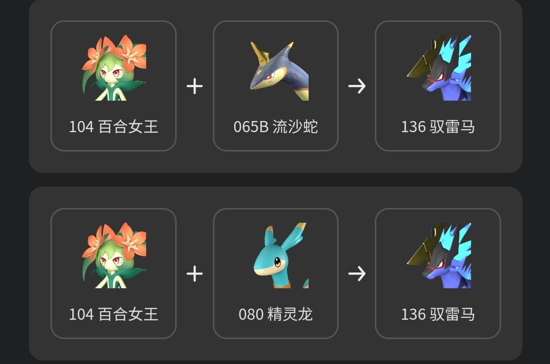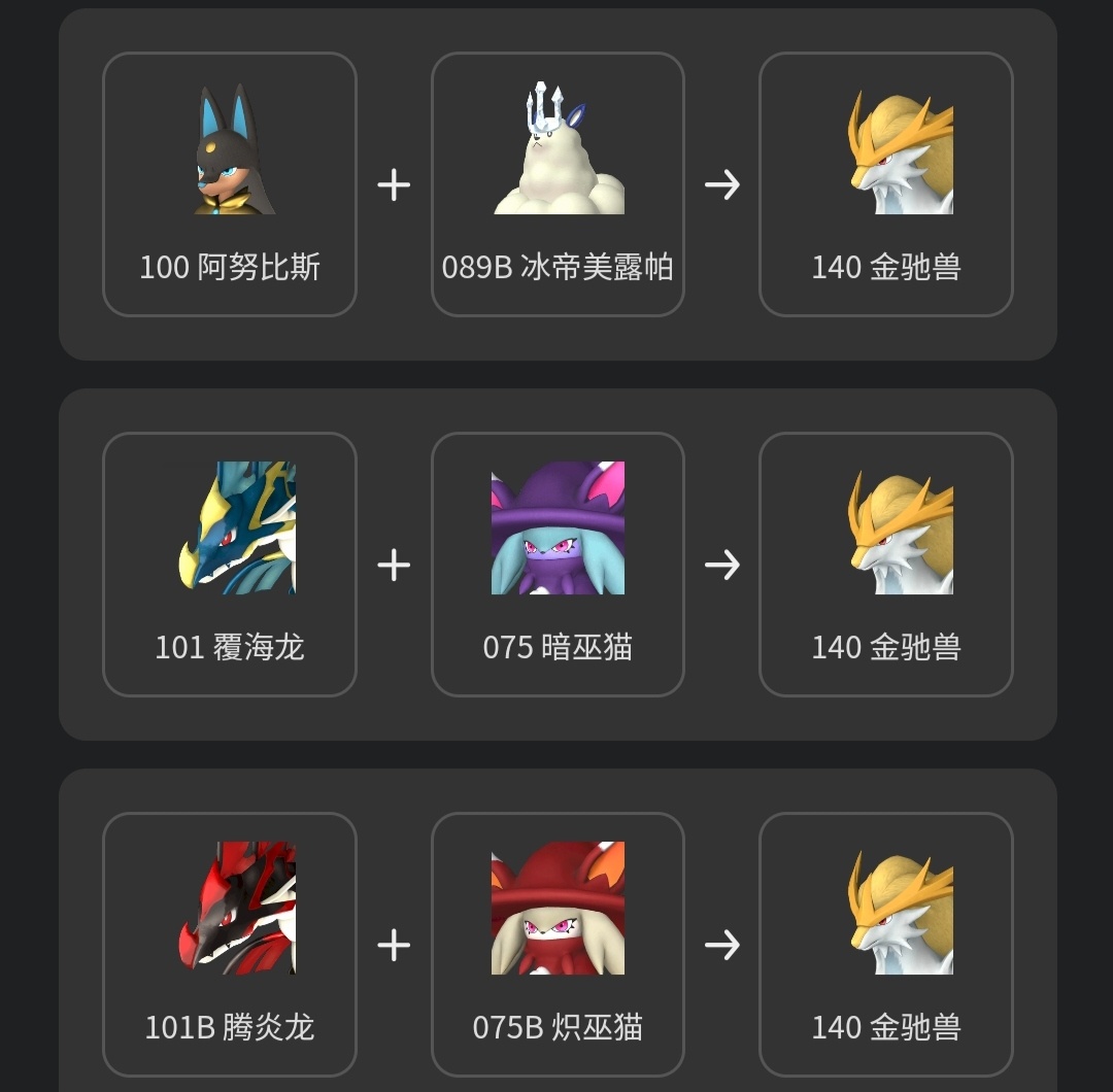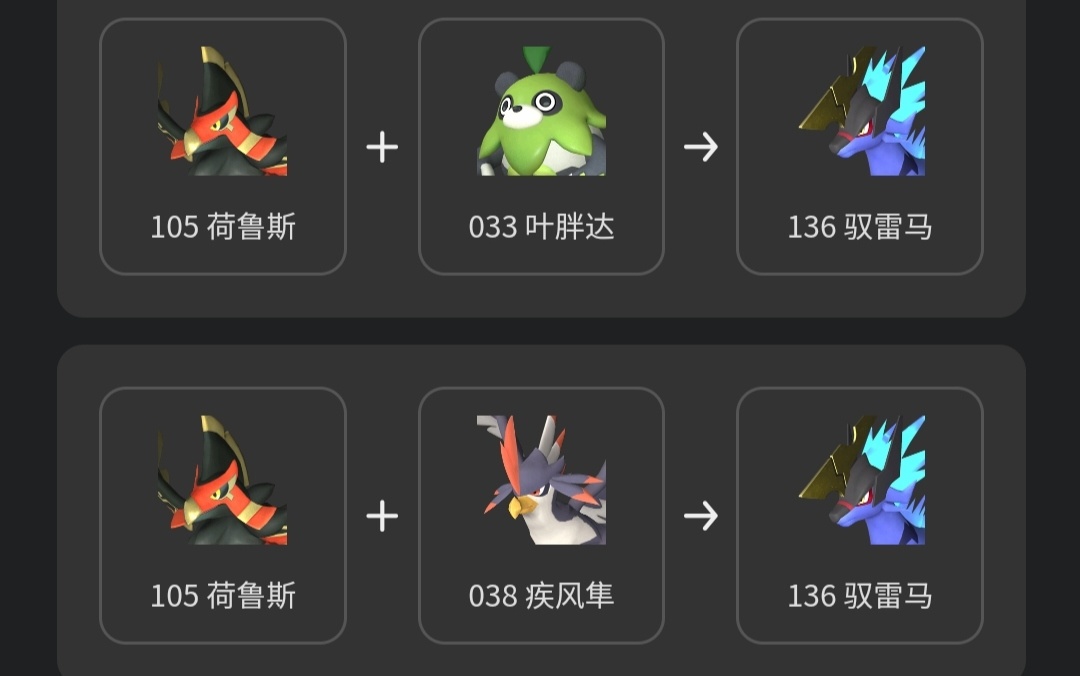 推薦馭雷馬的原因就是配種公式太多了,這裏只列舉部分,比波魯傑克斯容易得到太多了。