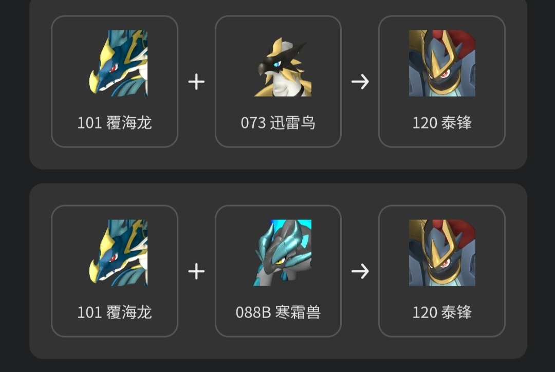 泰鋒可以通過上述四條配種公式皆可配種出打工泰鋒。